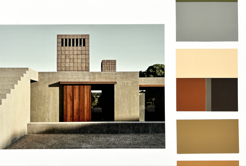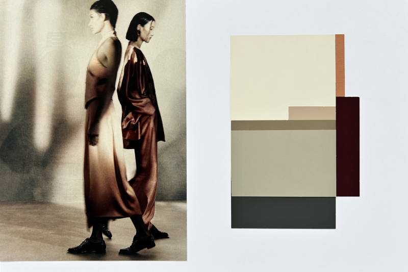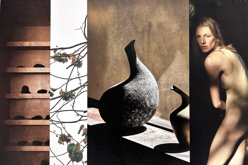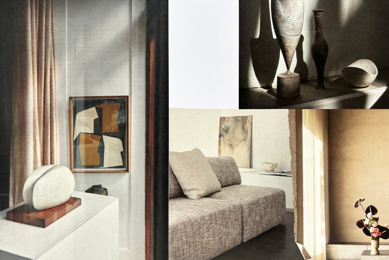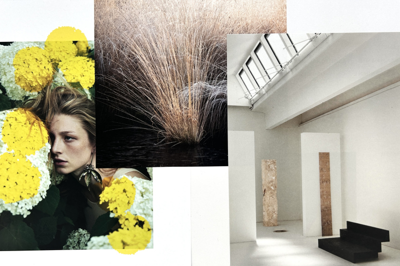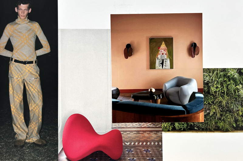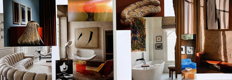 All moodboards here are made by hand, because I really like the different textures of paper and the artisanal vibe it has to it. I mostly use art, fashion or photography magazines or postcards. Sometimes I add my own printed pictures as well. I prefer making abstract moodboards, as there is more freedom in interpretation when making the translation into an interior concept.