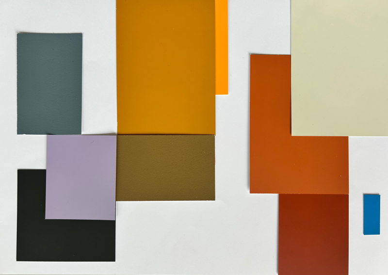All my color palettes are made by hand as well. Of course by using real paint samples. Creating an interesting color combination requires a lot of research and experiment. It sometimes can be a real struggle to find the right balance. I am really glad when I finally can feel a certain tension and connection between the chosen colors.