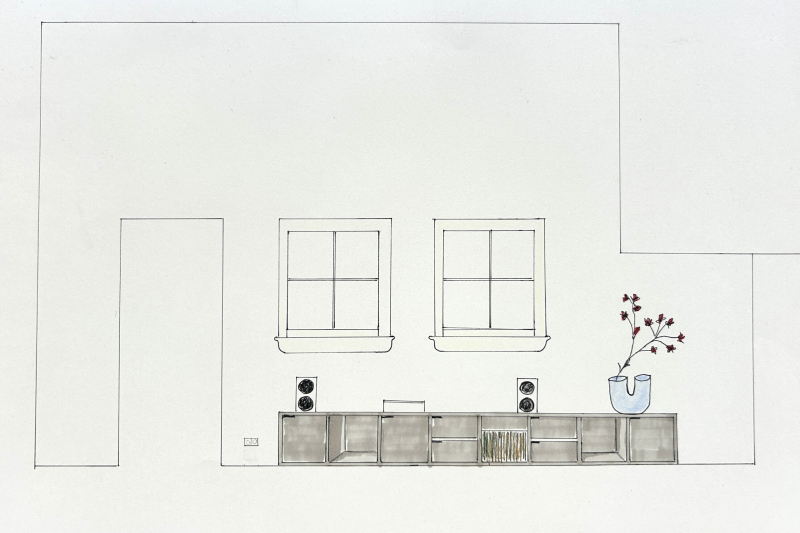 As much as I love the physicality of making analogue paintings and drawings, I am growing more and more into the possiblities that SketchUp can offer to the design process. Especially when researching quickly the ultimate flow of movement in a space, the distribution of light and framing different angles. Please find a selection of my rendering work in the section 'renderings'.
